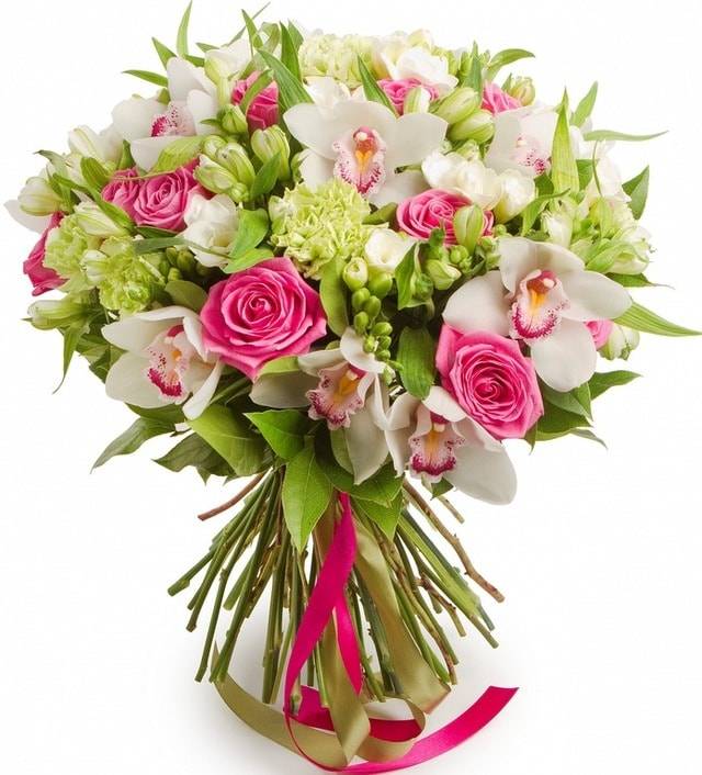 Цветовая гамма букета «Утро доброе» выглядит невероятно красиво, а сочетание в одной композиции орхидей, гвоздик, роз и альстромерий делает её необычной. Вы можете не сомневаться, что утонченная красота этих цветов никого не оставит равнодушным. Благодаря использованию зелени салала букет выглядит еще более свежим и красочным. Он идеально подойдет для подарка даме сердца, ведь гвоздики символизируют очарование и увлеченность, а орхидеи – элегантность и совершенство.